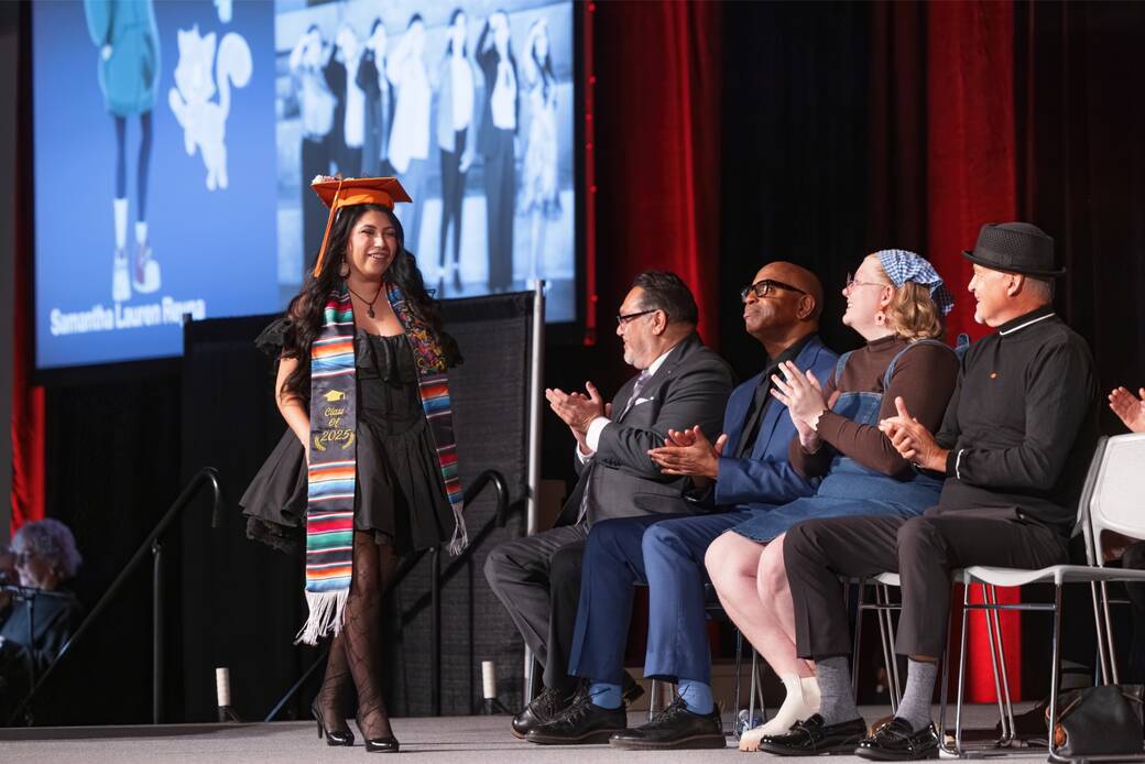 The exhibition follows two private viewing days for industry and invited guests, as well as the College’s private Spring 2026 Graduation ceremony earlier that morning, with commencement speaker California State Senator Sasha Renée Pérez.